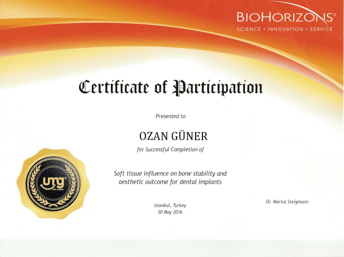 Diş Hekimi Ozan Güner, 1973 yılında İzmir’de doğdu. Ortaokul ve Lise eğitimini Özel İzmir Saint-Joseph Fransız lisesinde tamamlamıştır. Ege Üniversitesi Diş Hekimliği Fakültesinden 1998 yılında mezun oldu. Askerlik görevini 1,5 yıl Kırklareli Vize’de Diş Hekimi olarak tamamlamıştır. 2000 yılından itibaren özel kliniğinde ekibiyle birlikte hizmet vermektedir. Gerek kendi hastalarına gerekse İzmir ve çevresindeki hekimlerin hastalarına Panaromik röntgen ve tomografi hizmeti verilmektedir. 2003 yılından beri yurtiçi ve yurt dışında İmplantoloji dalında master programlarına katılarak implant ve cerrahi branşlarda mesleki gelişimini sürdürmüştür.